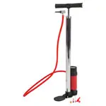 Die Pumpe ist mit einem Druckbehälter und einem Manometer ausgestattet. So können Sie immer den genauen Luftdruck im Ball ablesen. Der flexible Schlauch erleichtert das Aufpumpen.