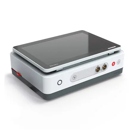 Dank intuitiver Benutzendenoberfläche ist das Elexeo-System leicht zu bedienen. Alle Funktionen lassen sich direkt über den kapazitiven 10-Zoll-Farb-Touchscreen einsehen und steuern. Der Bildschirm kann in einem Arbeitswinkel zwischen 30° und 60° eingestellt werden, sodass er aus allen Arbeitspositionen gut einsehbar ist, während ein stabiler Bildschirmträger für einen sicheren Stand sorgt. Die randlose Glasabdeckung ermöglicht zudem eine einfache Reinigung und Desinfektion mit Alkohol.