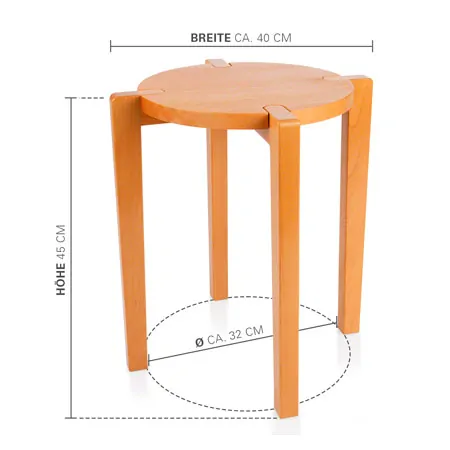 Stapelbarer Vierfußhocker Sitzfläche aus Buchenholz Naturfarben lackiert Durchmesser (ø): ca. 35 cm Sitzflächenstärke: 1,3 cm Erhältlich in drei .....