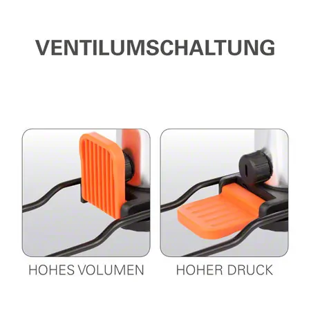• Wahlweise Hochdruck- und Hochvolumenmodus