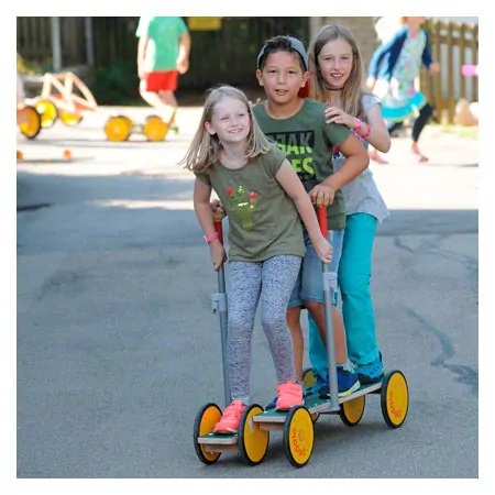 Bei dem gemeinsamen Fahren auf dem Koordinationstrainer werden Teamwork und Koordination gefördert. Dabei macht die Zusammenarbeit den Kindern besonders viel Spaß.