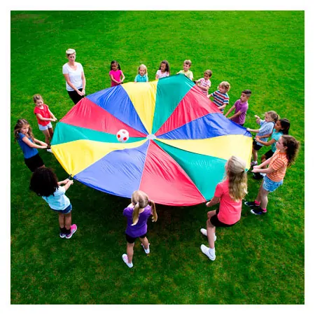 Das Schwungtuch ist ein beliebtes Spielgerät für Kooperations-Spiele und andere Gruppenspiele. Es eignet sich sowohl für Kinder als auch für Erwachsene.
