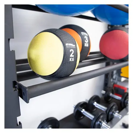 • Erweiterte Aufbewahrungsmöglichkeiten: Die 4er-Einlegestange bietet gegenüber dem Basismodell zusätzliche Auflagepunkte für verschiedene Trainingsgeräte.