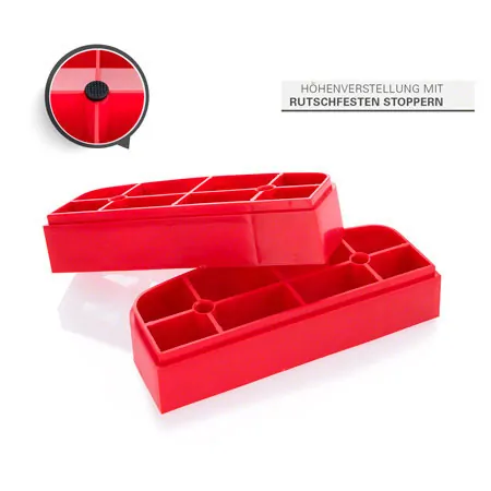 Die Höhe des Brettes kann in 2 Stufen verstellt werden. Dabei kann zwischen 10 und 15 cm Höhe gewählt werden.