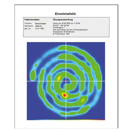 In der Datenbank können alle Patientendaten und Übungen gespeichert werden. Daraus lässt sich eine druckfähige Langzeitstatistik erstellen, die den Therapieverlauf eindeutig dokumentiert und eine Kontrolle und Auswertung des Trainings ermöglicht. Der Therpiekreisel Gymtop USB ist auch in der Home Edition lieferbar.